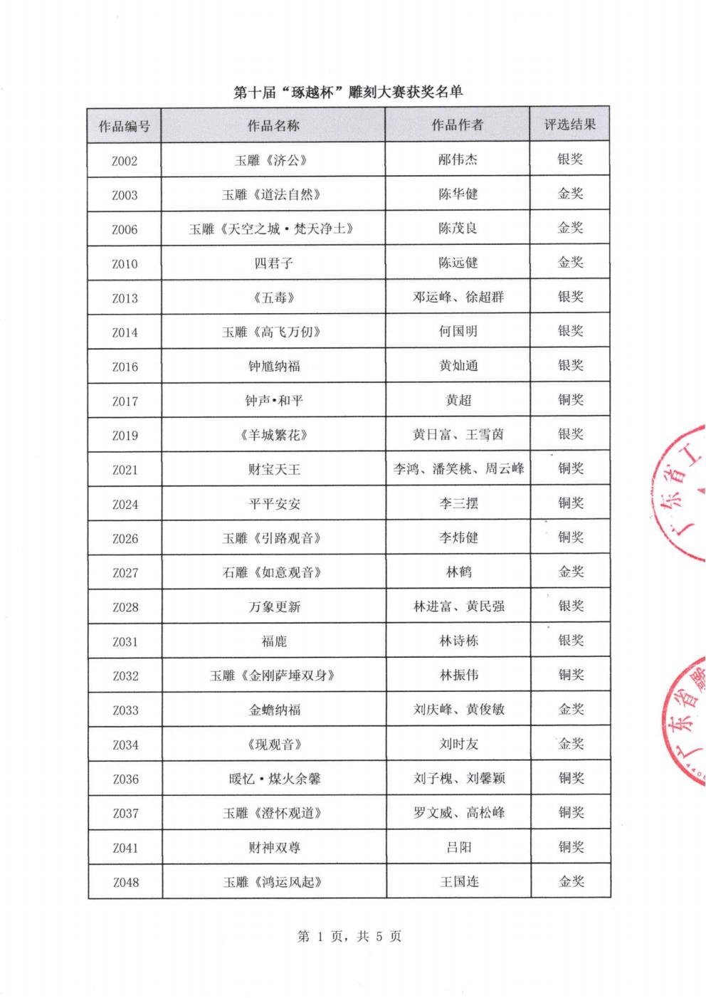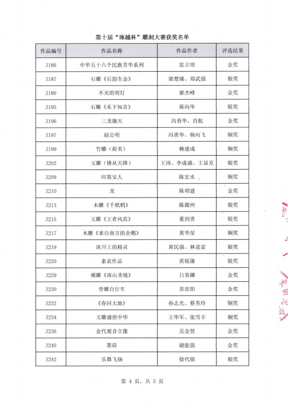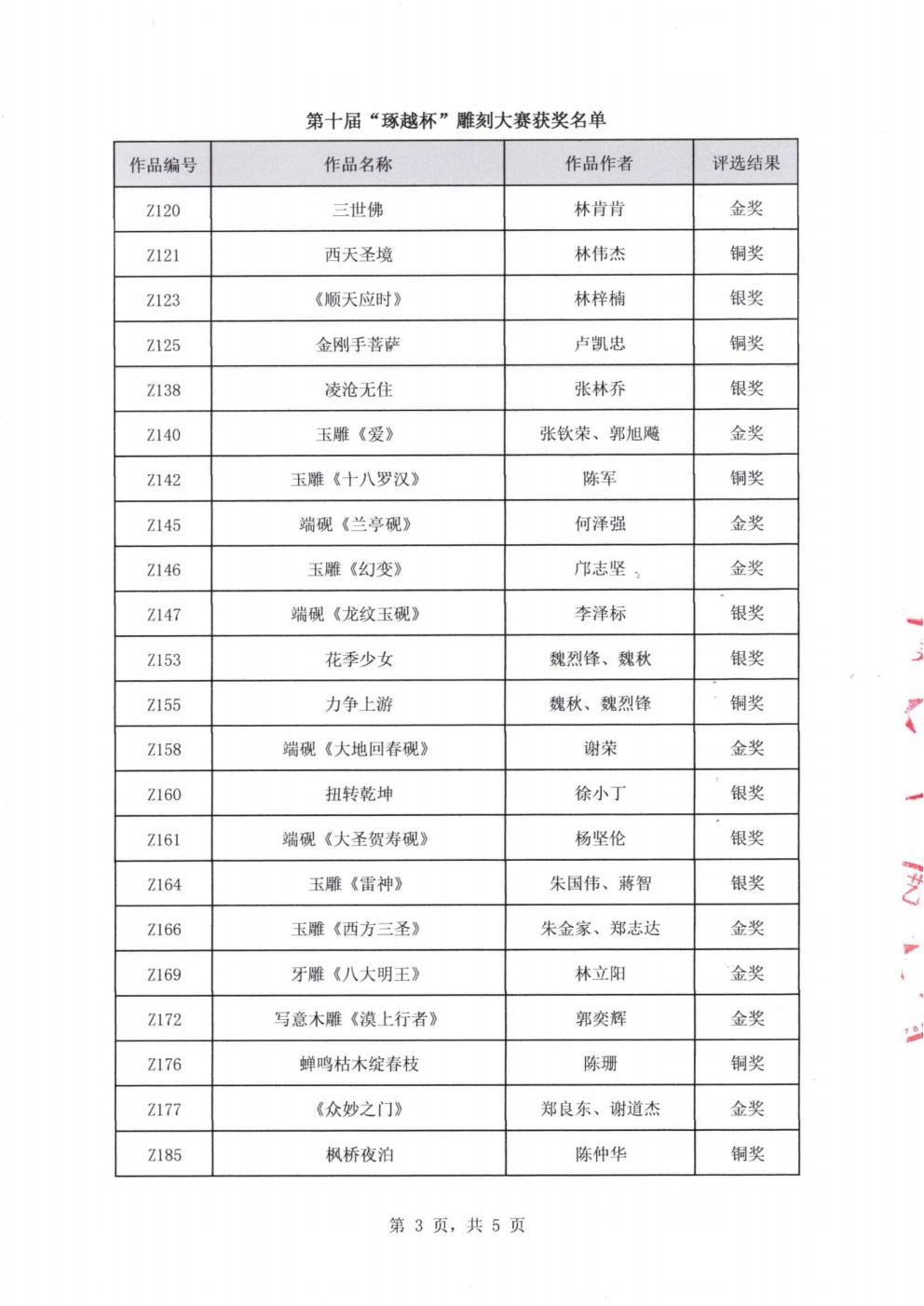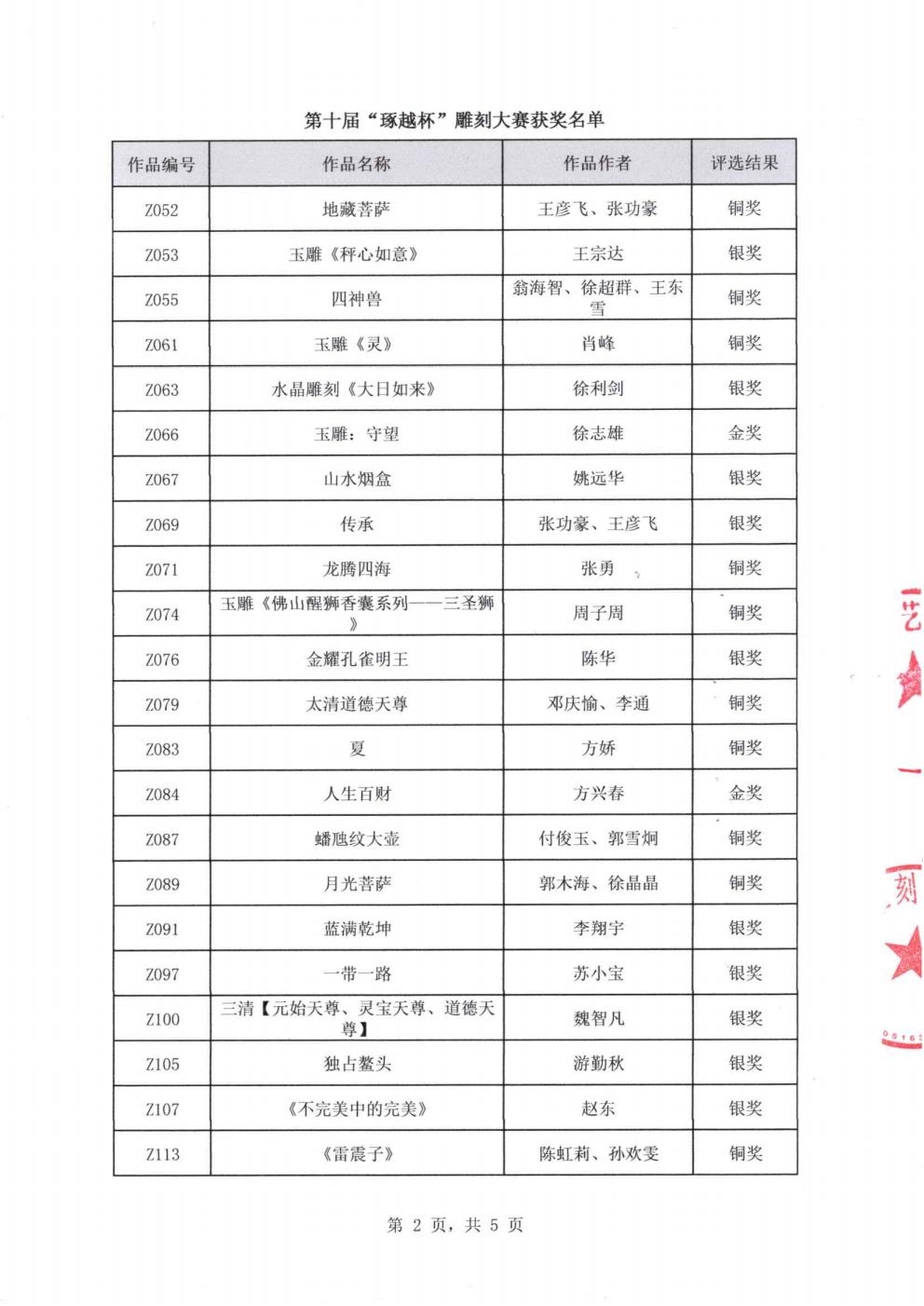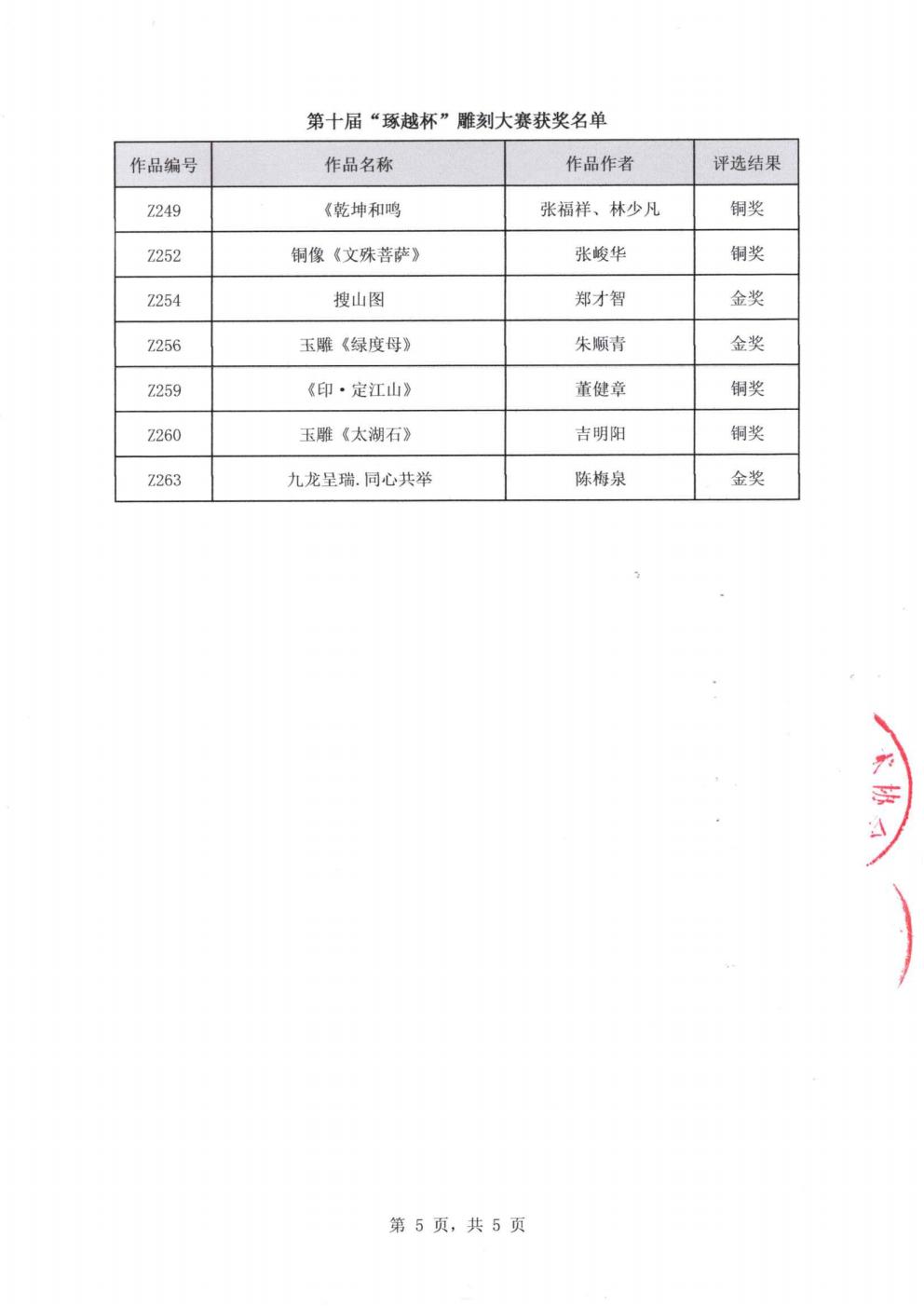 关于第十届“琢越杯”雕刻大赛获奖名单的公告